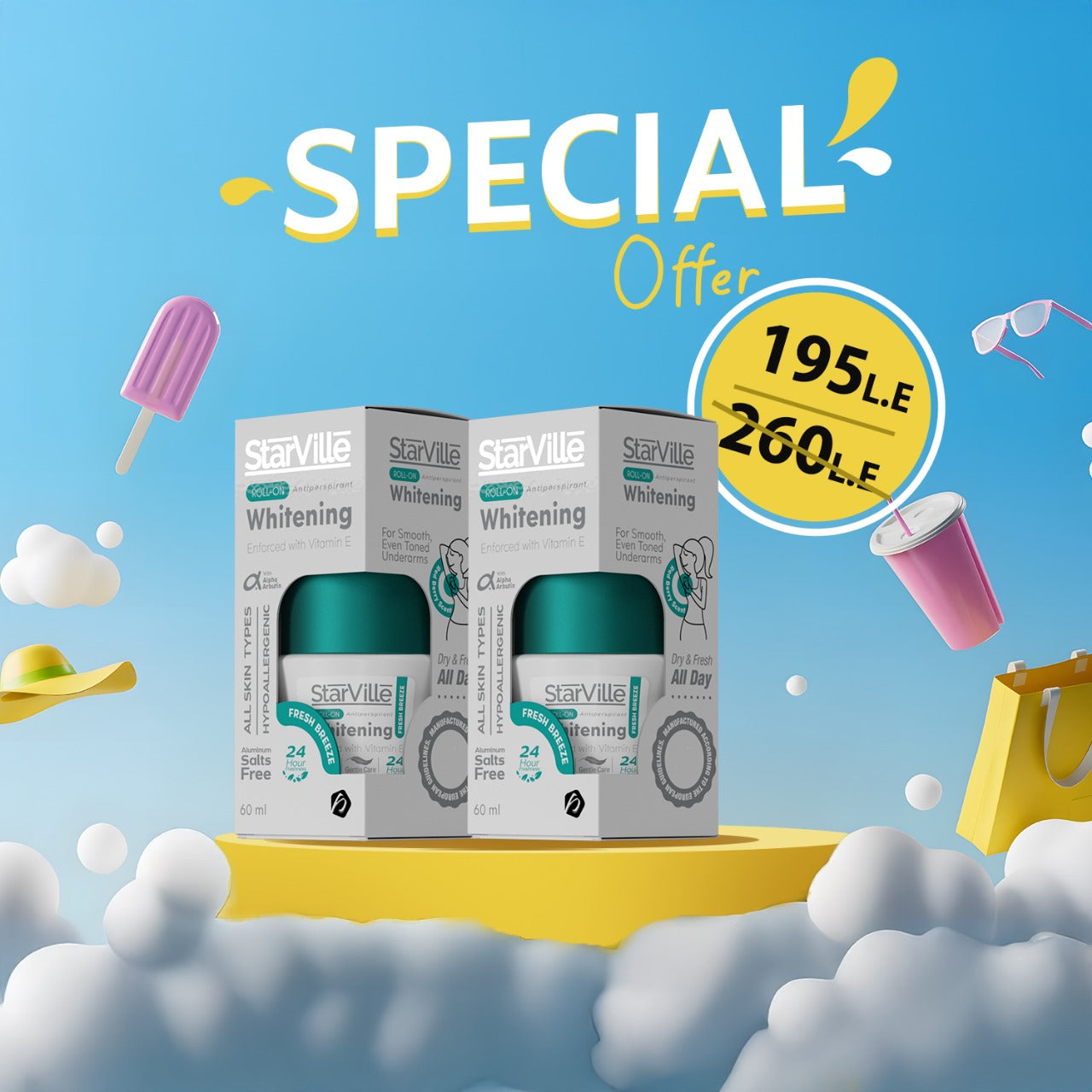 50% discount on 2nd Starville Roll On 60ml Whitening Fresh Breeze scent